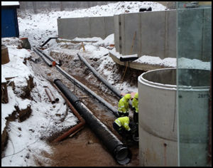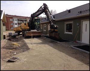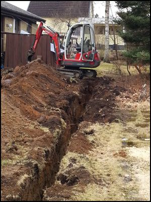 Här har vi grävt schakt för rören mellan