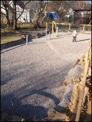 och motfyllde samt la ut makadam mm.