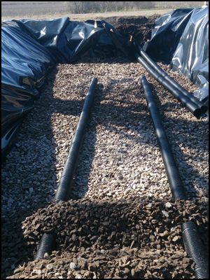 Uppsamlingsrören på makadambädd.