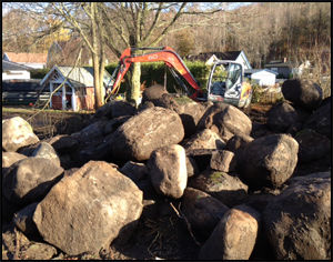 Grävt upp ca 90 kbm sten ur en trädgård.